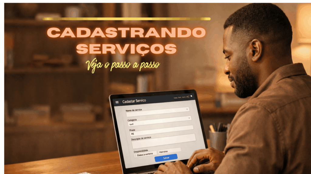 Você será direcionado para a página de Cadastro de Serviços, onde todas as informações do seu serviço serão preenchidas.