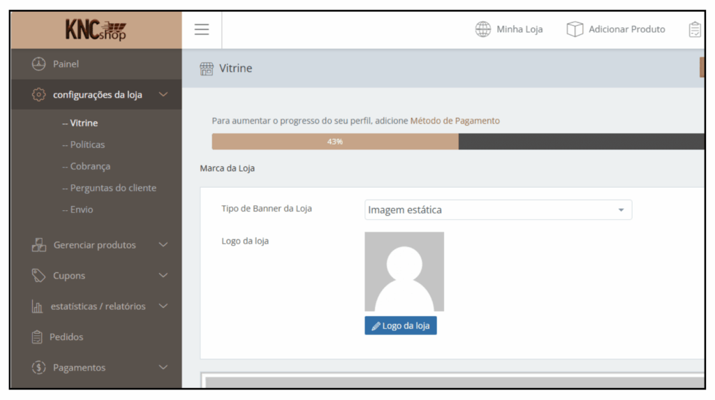 A configuração da vitrine pode ser ajustada posteriormente. No entanto, é altamente recomendável defini-la corretamente antes de divulgar sua loja ou iniciar as vendas no KNCShop.